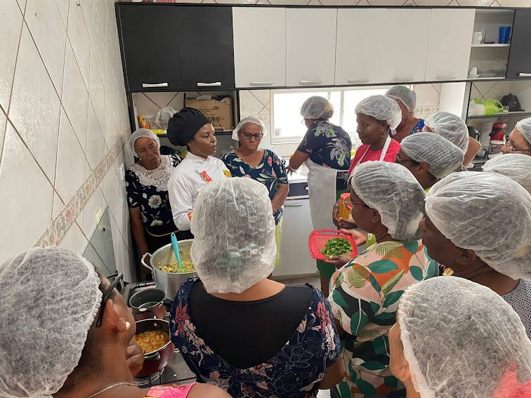 Experiência Gastronômica: As mulheres marisqueiras foram capacitadas pela Chef Negralinda e agora também são cozinheiras especialistas na Gastronomia do Mangue., em especial o Fingi um prato tradicional preparado pela Chef Maru que de pescadora virou Chef de Cozinha depois do curso com a Chef Negralinda..