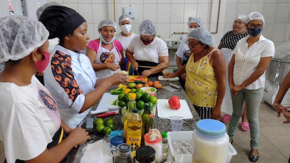 Experiência Gastronômica: Mulheres e homens foram capacitados pela Chef Negralinda para oferecerem com qualidade pratos especiais produzidos com os frutos do mangue.